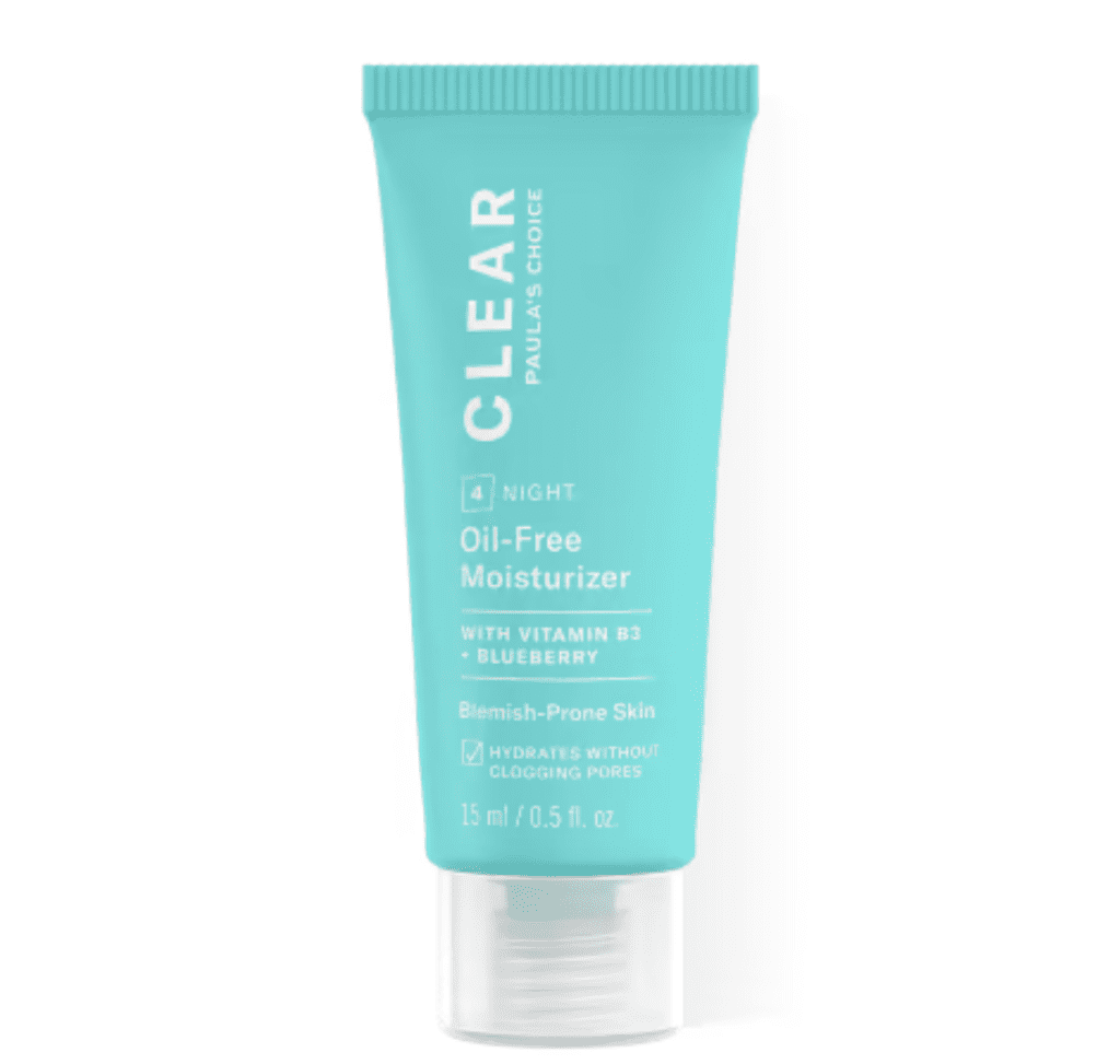 The Clear Oil-Free Moisturizer from Paula’s Choice delivers lightweight hydration without clogging pores or leaving an oily residue. It effectively soothes flaky skin, minimizes pores, strengthens the skin’s barrier with ceramides, and calms redness with powerful antioxidants like pumpkin and blueberry.